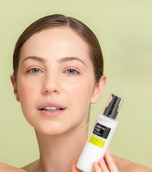 2. Apply a green tea toner to your face and neck.