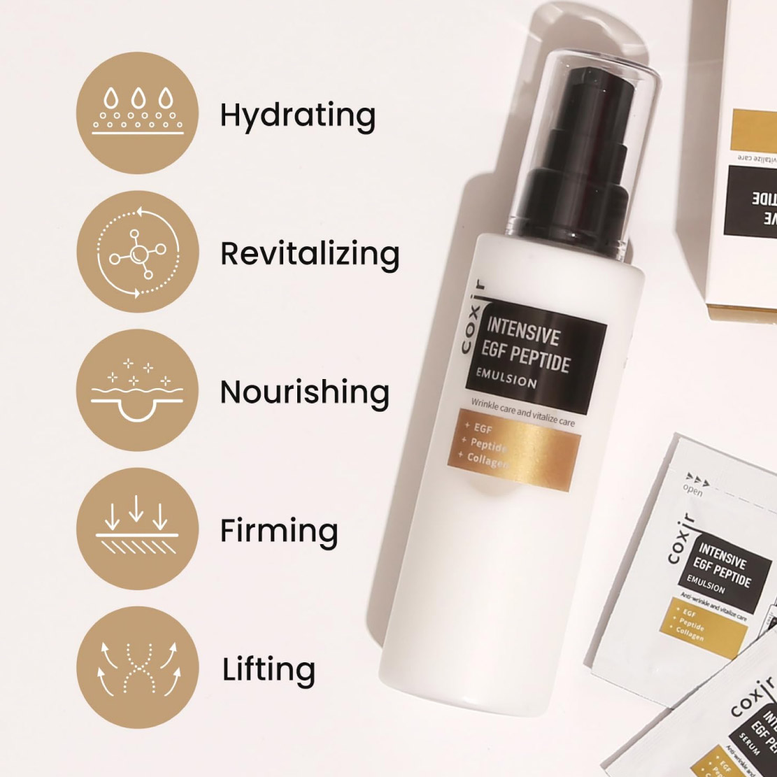 The Coxir Peptide Emulsion is a lightweight, fast-absorbing moisturizer designed to deeply hydrate and smooth the skin. With a blend of peptides and collagen, it helps improve skin elasticity while reducing the appearance of fine lines and wrinkles. This emulsion also supports skin brightening and helps even out skin tone, making it ideal for all skin types, including sensitive skin.