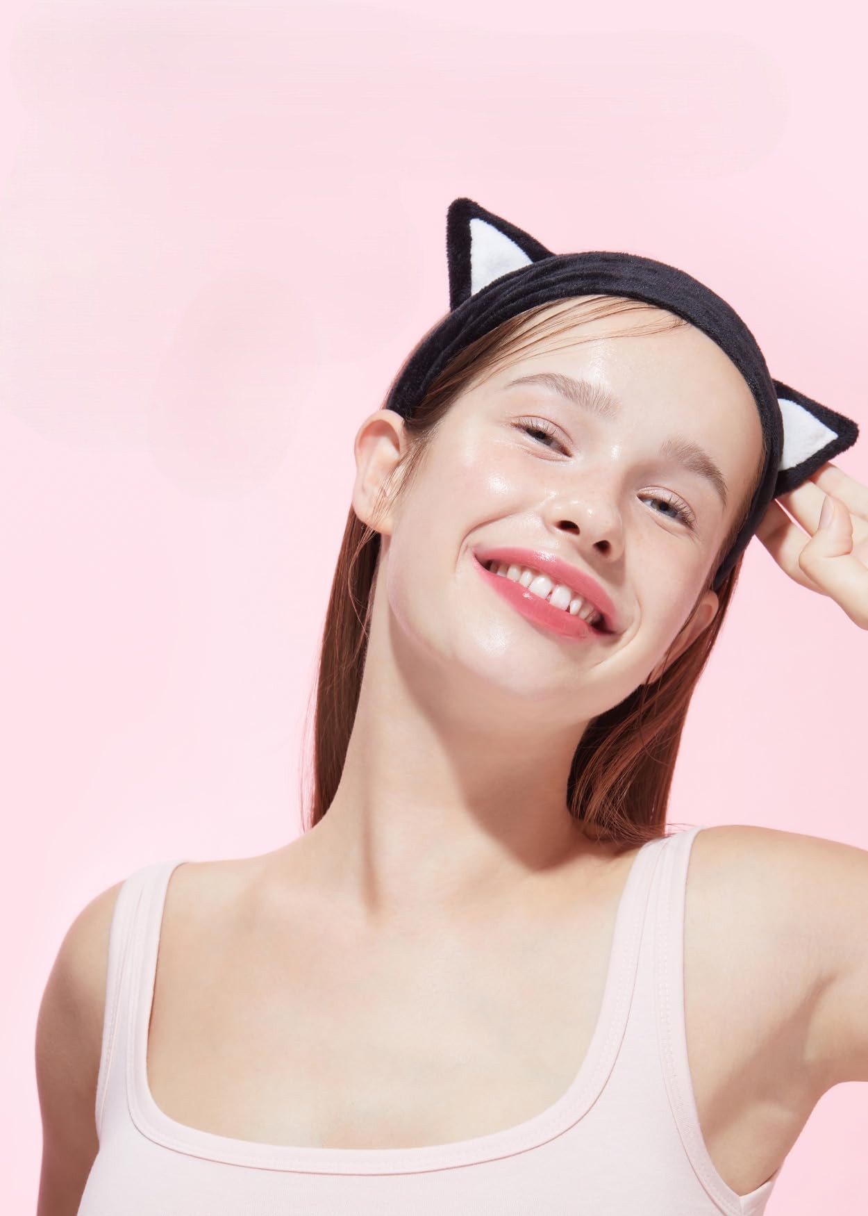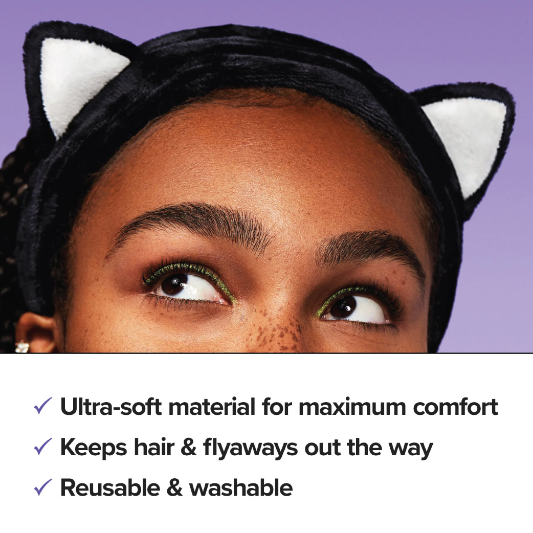 1. Wear the headband with the black cat ears at the top to keep hair away from the face.