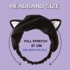 The “I Dew Care Black Cat Headband” is a flexible elastic hair band designed to help keep your hair out of the way during face washing, makeup removal, or other skincare routines. Its cute black cat ears add a playful touch, while the soft material ensures maximum comfort without causing any pressure on the scalp or hair.