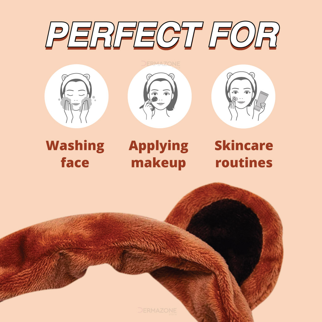 The “I Dew Care Brown Bear Headband” is a soft and flexible elastic hairband designed to help with daily skincare routines, such as face washing and makeup removal. Simply wear it on your head to keep your hair out of the way, without causing any pressure on your hair or scalp, thanks to its comfortable and hair-safe design.