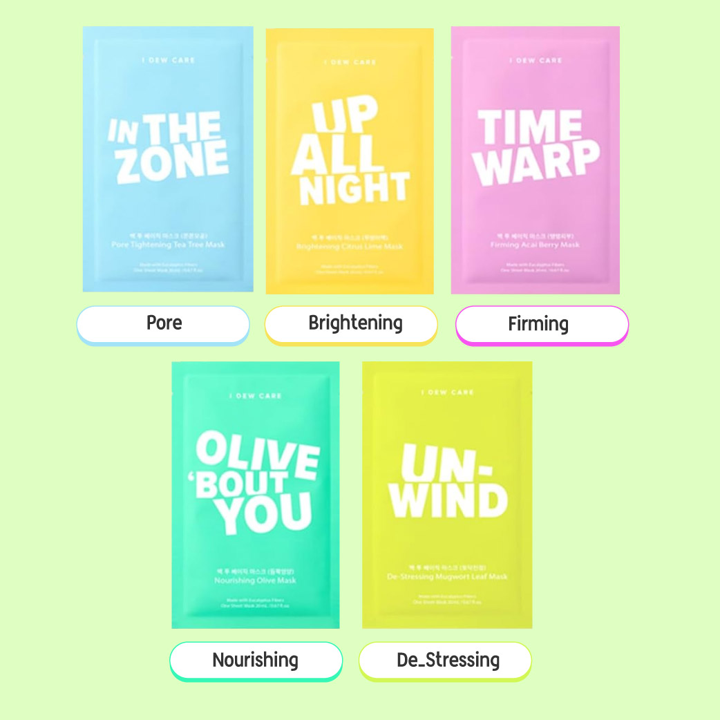 ⦿ 5 unique sheet masks for diverse skin concerns.