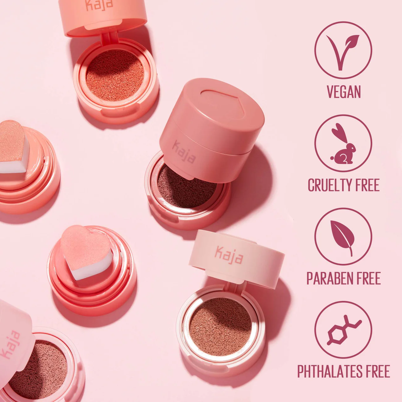 Kaja’s Cheeky Stamp Blendable Blush is a cushion blush formula featuring a heart-shaped applicator that delivers a sheer-to-buildable flush of color. This innovative design allows for easy application and blending, giving your cheeks a natural, radiant glow.