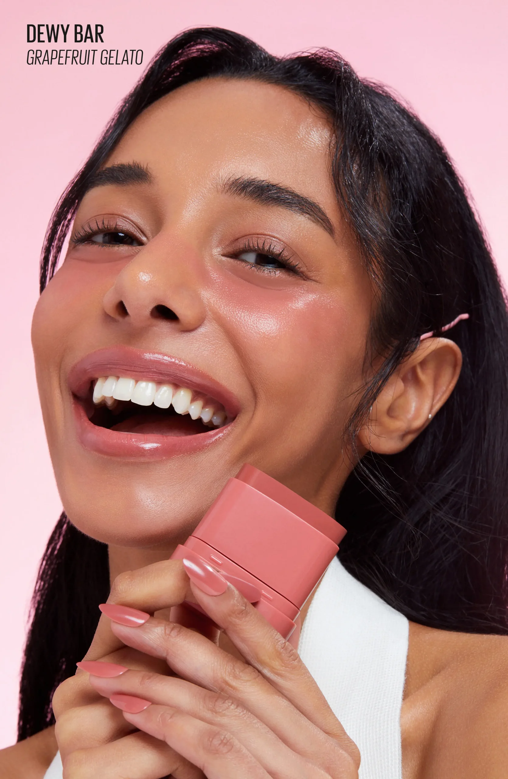 Kaja’s Dewy Bar Cheek & Lip Multi Balm is a versatile, hydrating multi-stick that effortlessly melts onto both cheeks and lips, delivering a natural, dewy flush of color. Its lightweight, buildable formula allows for easy application and blending, making it a convenient addition to any makeup routine.